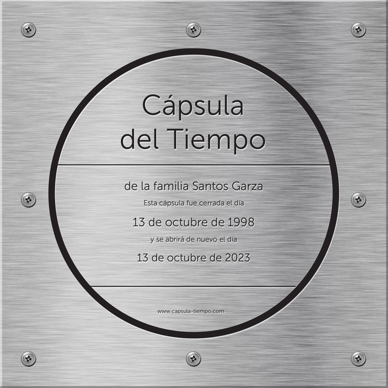 El modelo básico (kit) de cápsula del tiempo como la que se ve en este website tiene un costo de $2,990 pesos más envío. Solicita nuestro catálogo de diseños para la tapa. Si tienes un logotipo o diseño especial nos lo puedes enviar en JPG de alta resolución y lo imprimimos en la tapa.