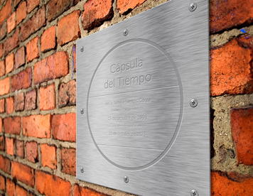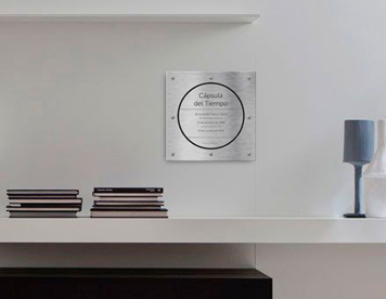 Cápsula del tiempo en acero de 30x30x17cms.